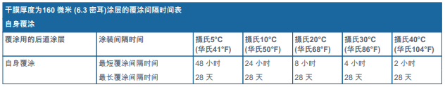 ?在涂裝施工和涂層固化過程中應(yīng)確保底材溫度高于攝氏 5°C (華氏41°F)。
