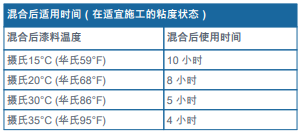 ?在涂裝施工和涂層固化過程中應(yīng)確保底材溫度高于攝氏 5°C (華氏41°F)。
