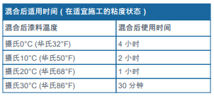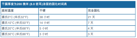 ?在涂裝施工和涂層固化期間底材溫度應(yīng)維持在攝氏 0°C (華氏32°F) 和攝氏 50°C (華氏122°F)之間。