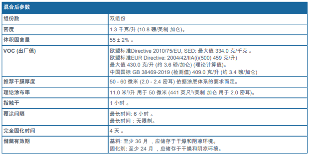 備注: 敬請參閱補充參數(shù) - 混合后適用時間。