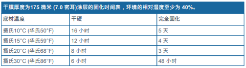-敬請參閱補充參數(shù)表 - 涂層固化時間表。
