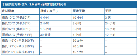 -敬請(qǐng)參閱補(bǔ)充參數(shù)表 - 涂層固化時(shí)間表。